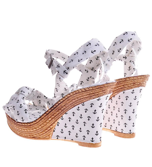 Damskie sandały na koturnie Białe /F10-1 11684 T271/