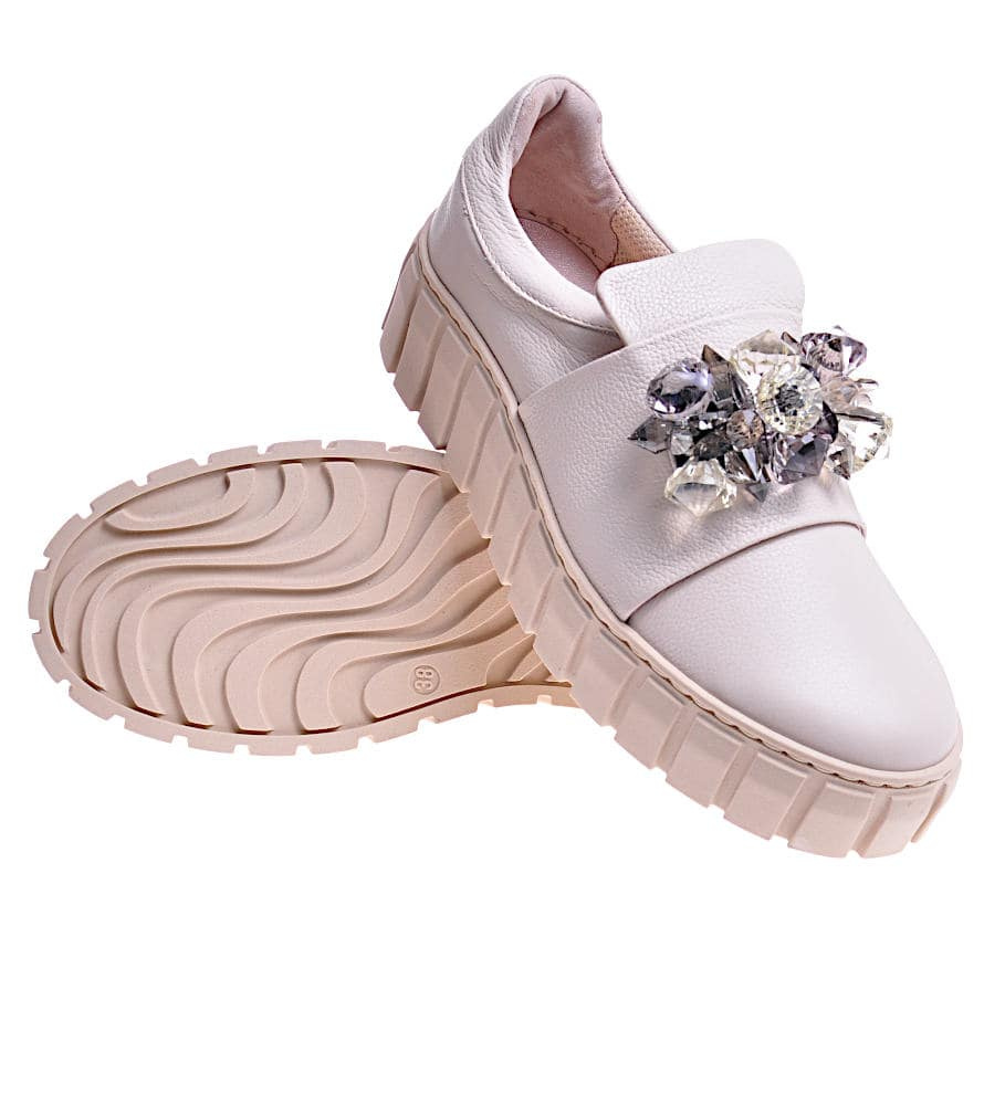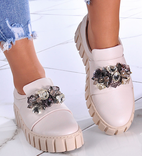 Beżowe skórzane damskie trampki creepersy /F8-2 11728 N0200/