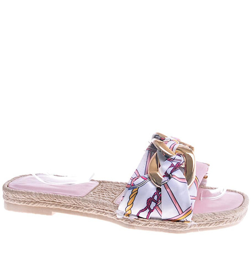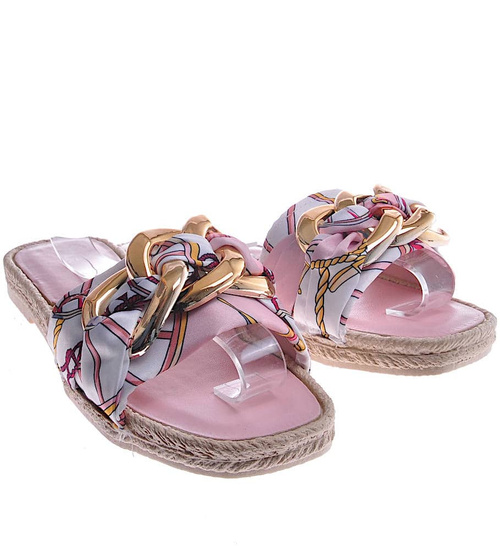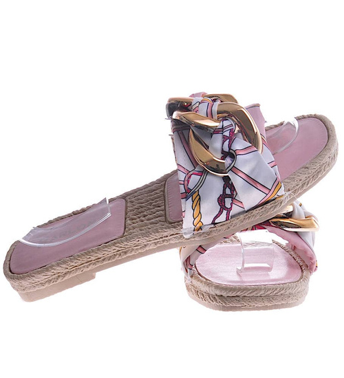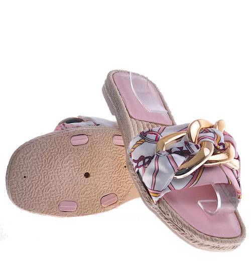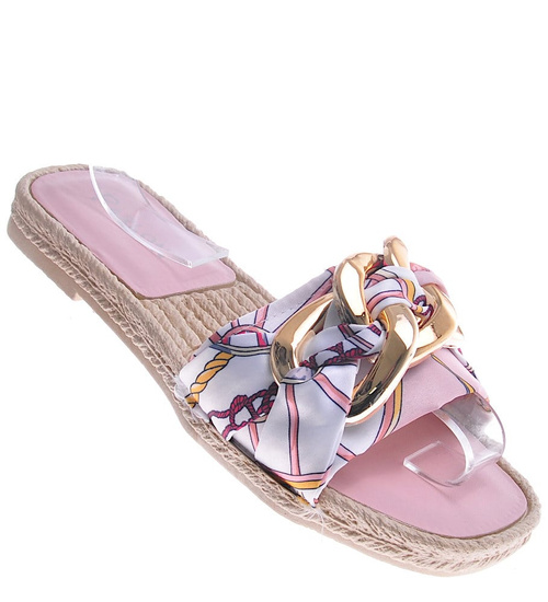 Jasno różowe damskie klapki z łańcuchem /A2-1 11861 T293/