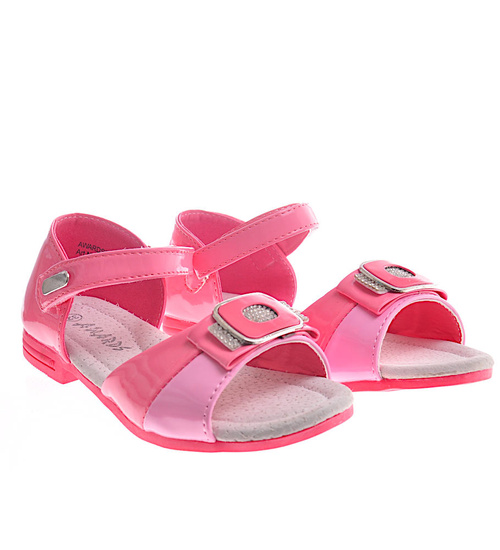 - Różowe sandałki dla dziewczynek w odcieniu melon to idealne obuwie na letnie dni.