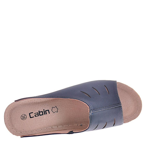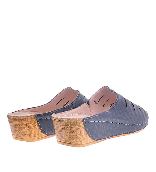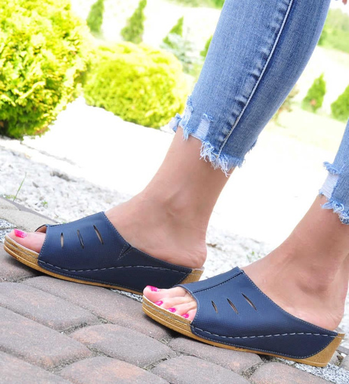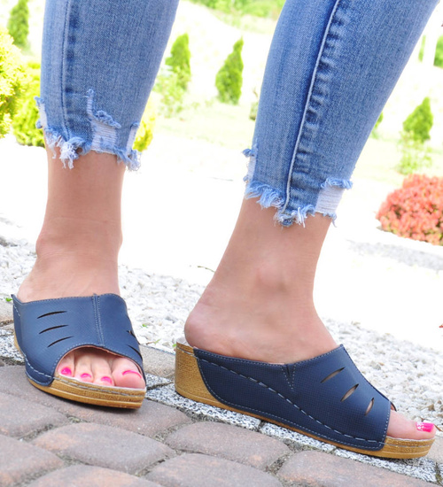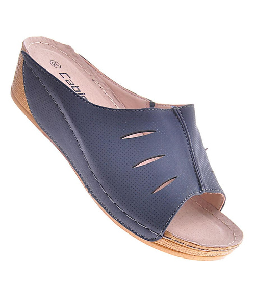 Damskie granatowe klapki na koturnie /F8-3 11993 T5/