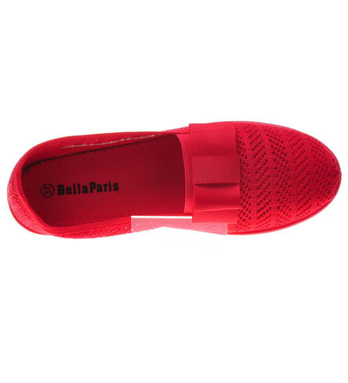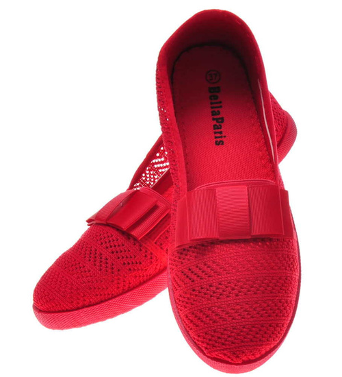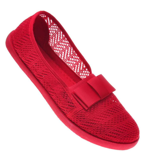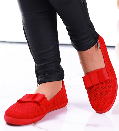 Koronkowe tenisówki damskie z kokardą Czerwone /E2-3 6117 S192/