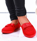 - Koronkowe tenisówki damskie wykonane z koronkowego materiału w czerwonym kolorze.
