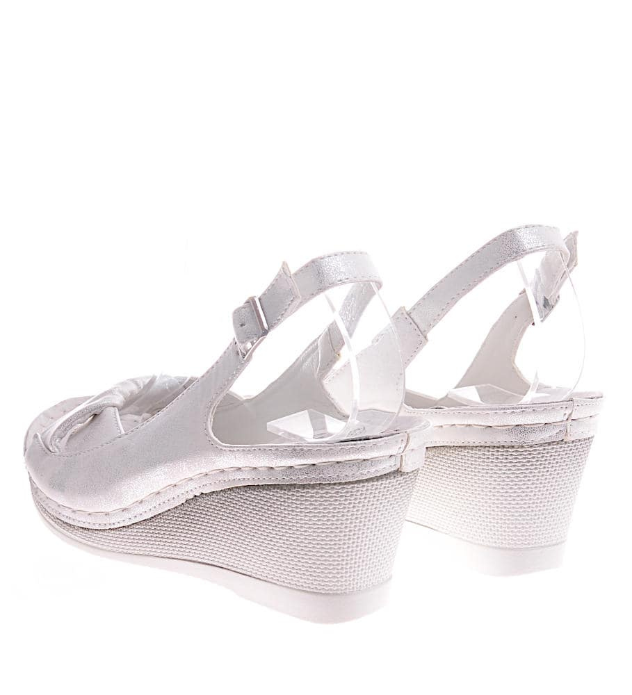 - Srebrne sandały damskie postawione na koturnie zapewniają niesamowity komfort.