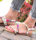 • Sandały na płaskim obcasie z przewagą koloru białego.