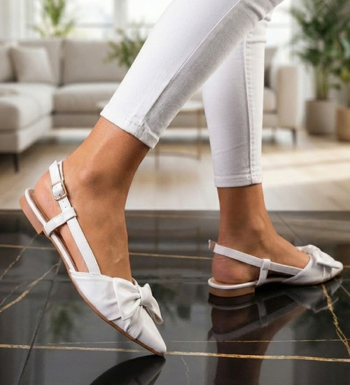 Białe damskie sandały z kokardką /G9-2 12056 T394