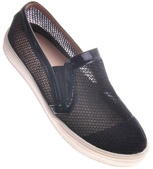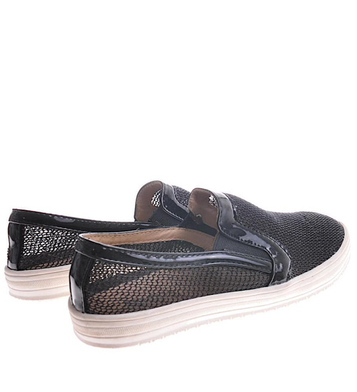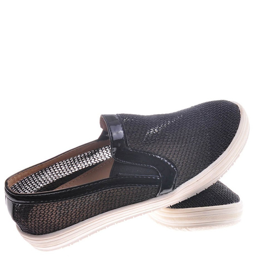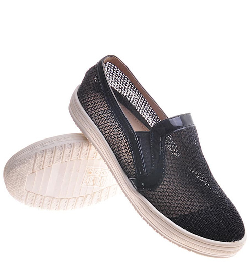 Ażurowe czarne tenisówki slip on /D2-2 11942 T191/