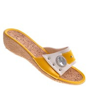 Żółte klapki na koturnie /E8-1 12174 T006/