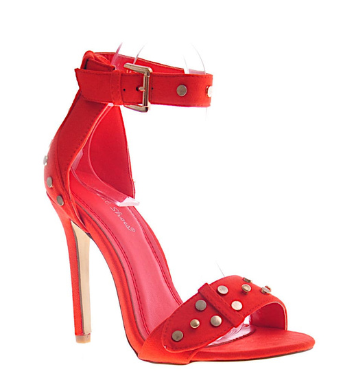 Pomarańczowe damskie sandały na szpilce /A6-1 12152 T194/