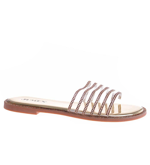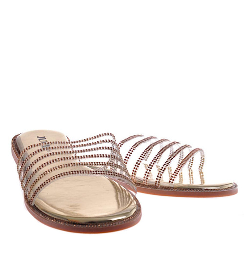 Złote damskie klapki na lato /B2-2 12236 T195/