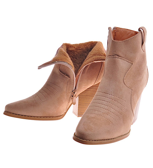 - Zapinane na suwak, wnętrze tych damskich kowbojek zostało ocieplone kocem obuwniczym.