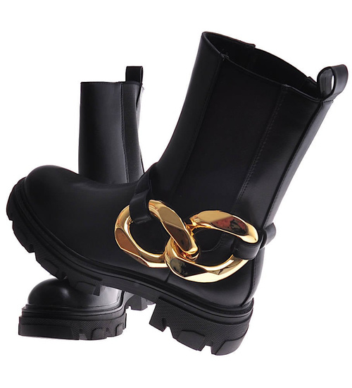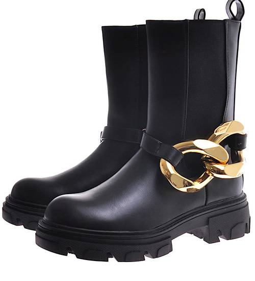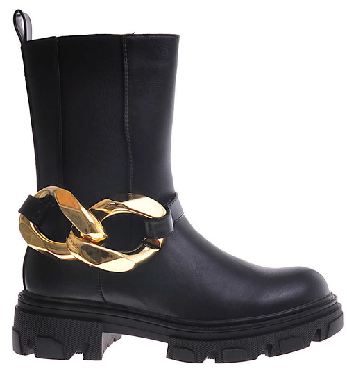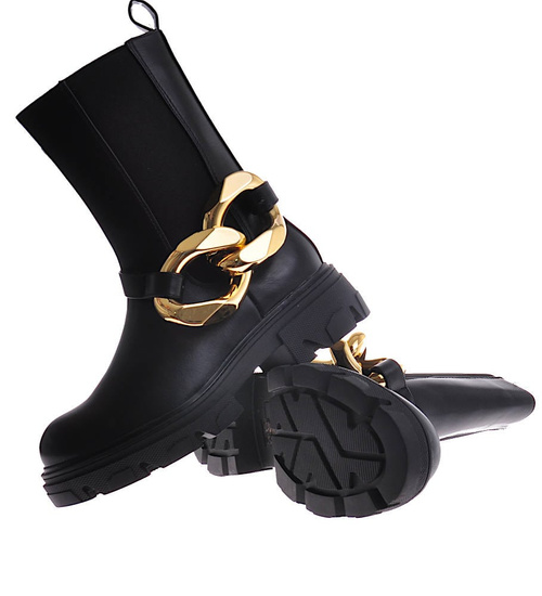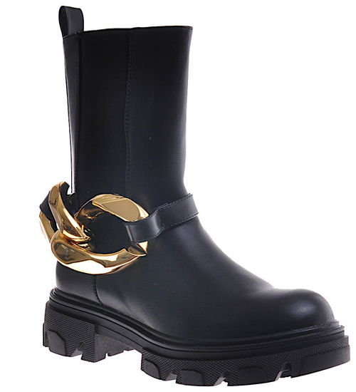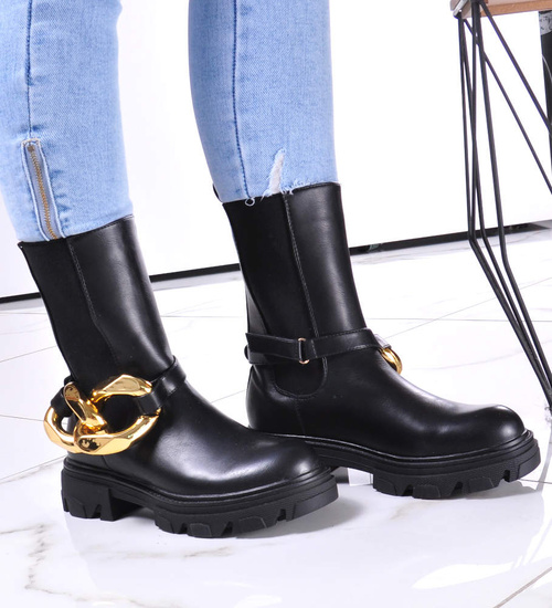Czarne botki z łańcuchem /A4-3 12253 T738/