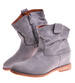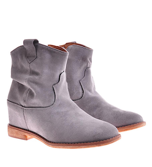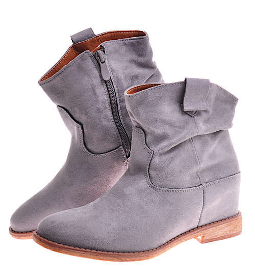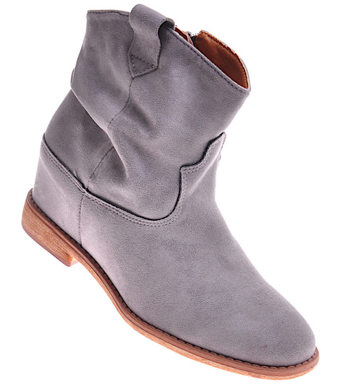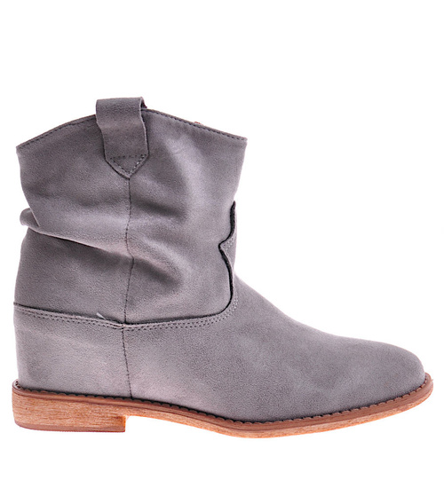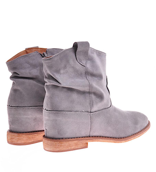 Zamszowe botki damskie na niskim koturnie Szare /D6-3 12260 T296/
