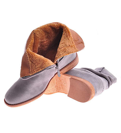 - Wnętrze prezentowanych zamszowych botków zostało docieplone delikatnym futerkiem.