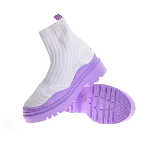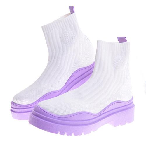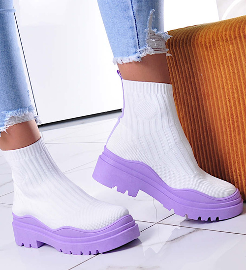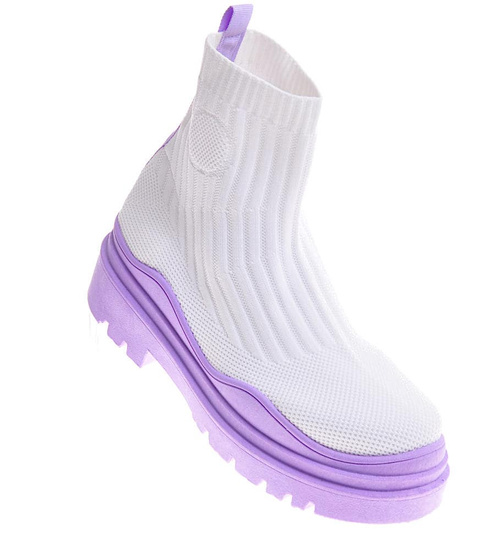 Damskie botki na grubej podeszwie White/Purple /G5-2 12391 T490/