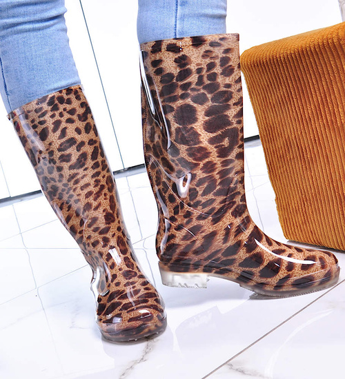 Wysokie damskie kalosze w panterkę /D9-1 12402 A S397/