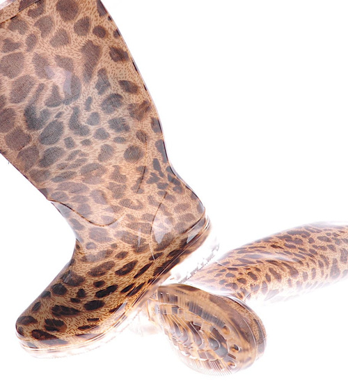 • Na wierchu kaloszy znajdziemy zwierzęcy motyw panterki.