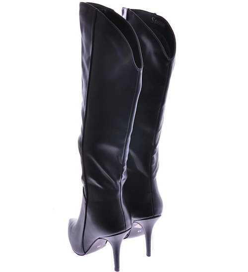 Czarne kozaki damskie na szpilce /A3-3 12433 S698/