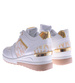 - Wykonane z ekologicznej skórki w białym kolorze ozdobione złotymi elementami.