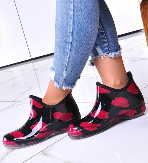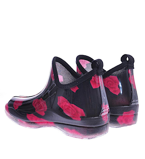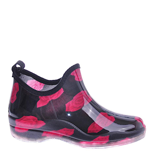 Damskie kalosze z krótką cholewką w róże czarne /B1-1 12489 T490/
