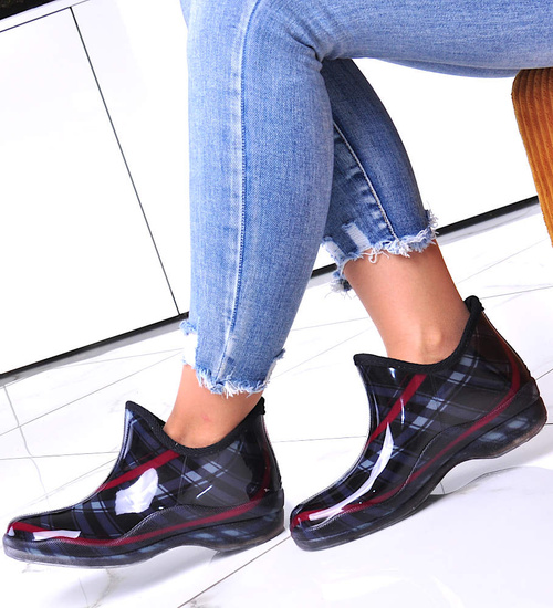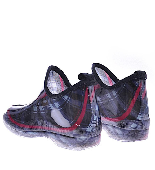 Damskie kalosze z krótką cholewką w kratkę czarne /E2-1 12496 T495/