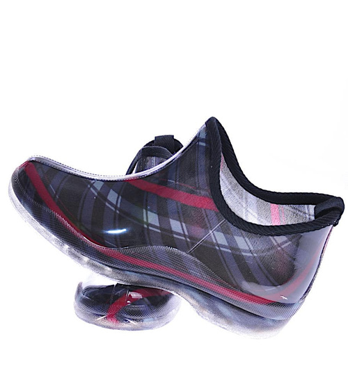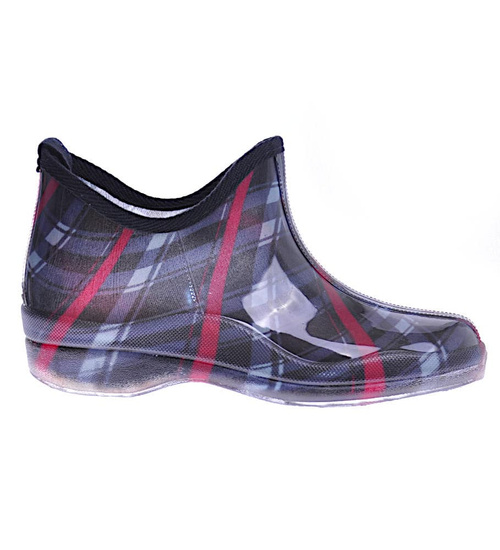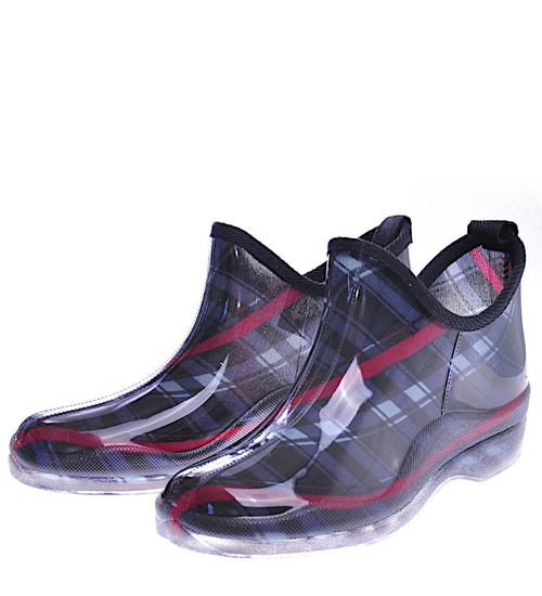 - Wzór kratki pięknie prezentuje się na kaloszach.