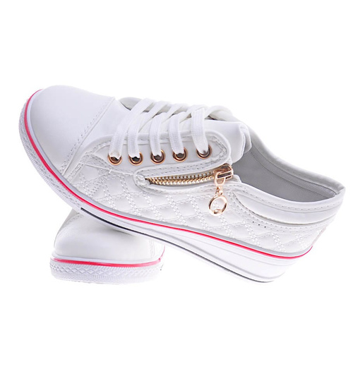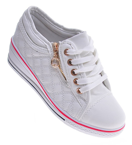 Dziewczęce trampki na niskim koturnie Białe /F7-2 11327 S10-5/