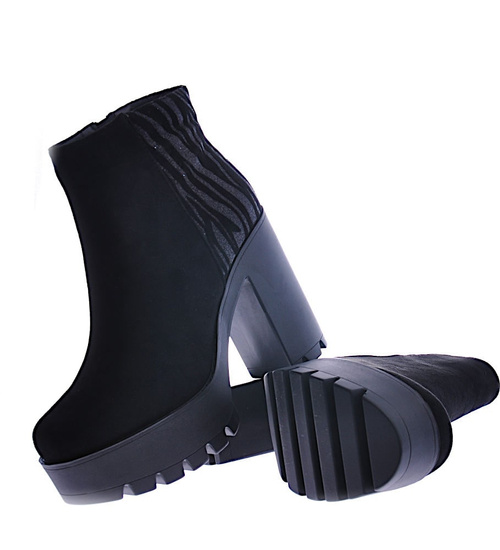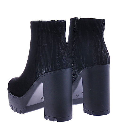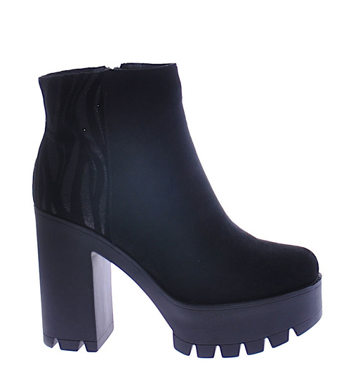 Czarne botki zimowe na grubym obcasie /E8-1 18558 G388/