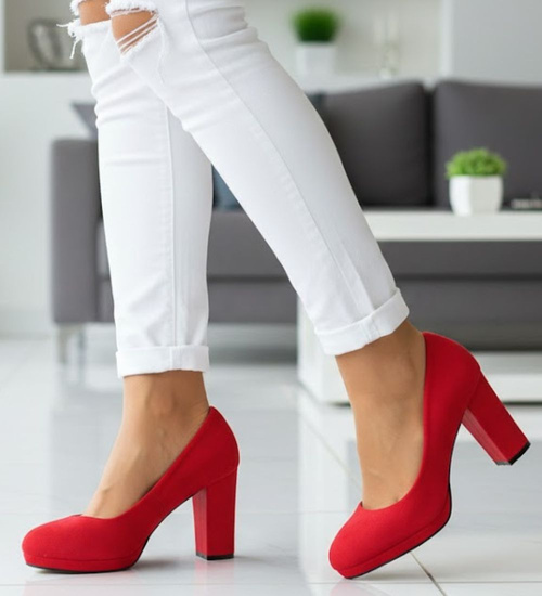 - Modne czółenka damskie w kolorze czerwonym.