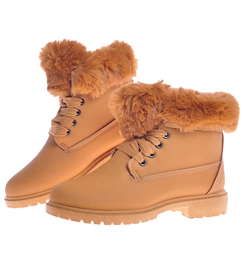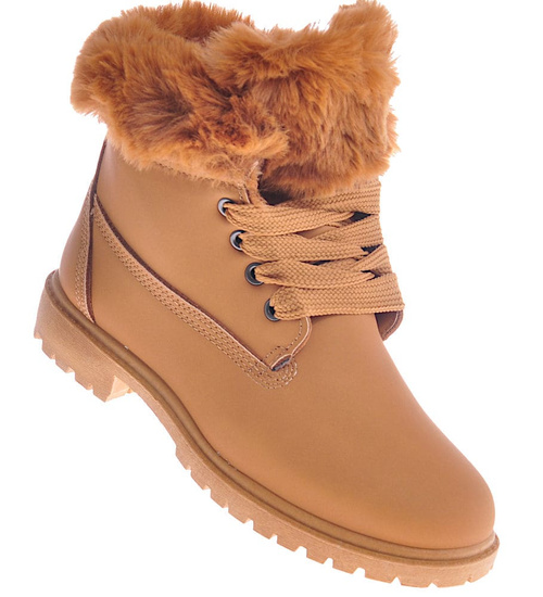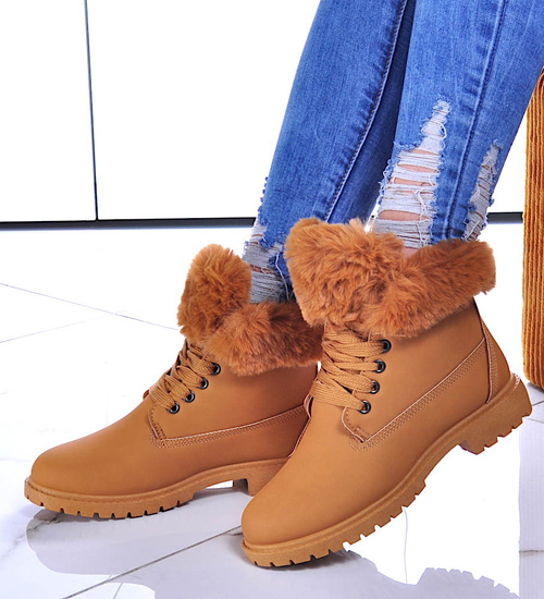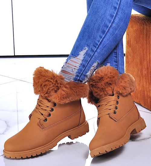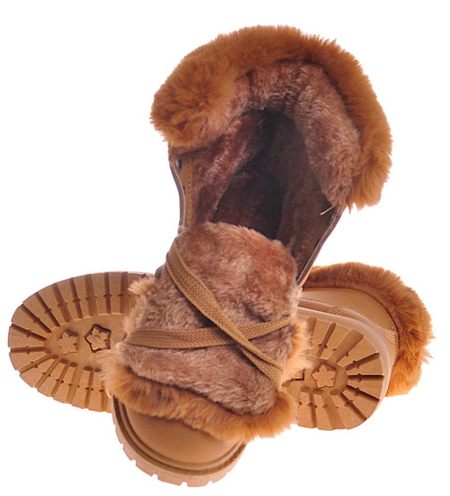 Ocieplane damskie trapery z futerkiem Camel /B1-3 10416 S328/