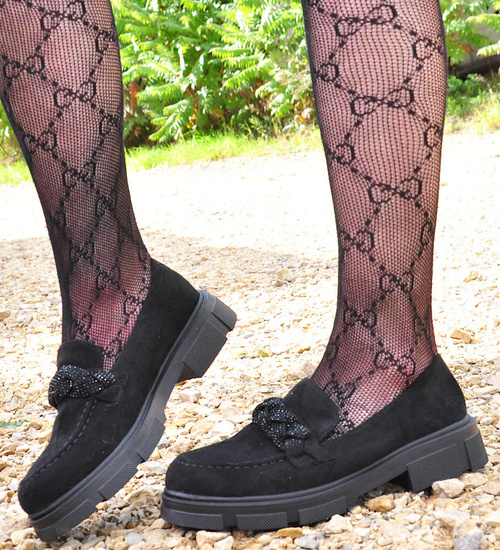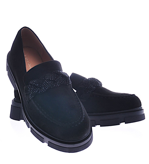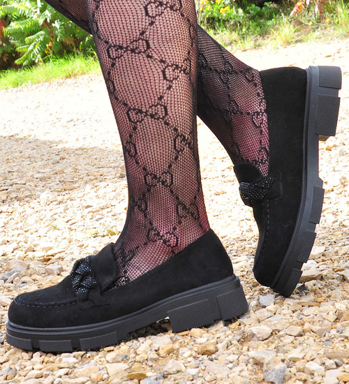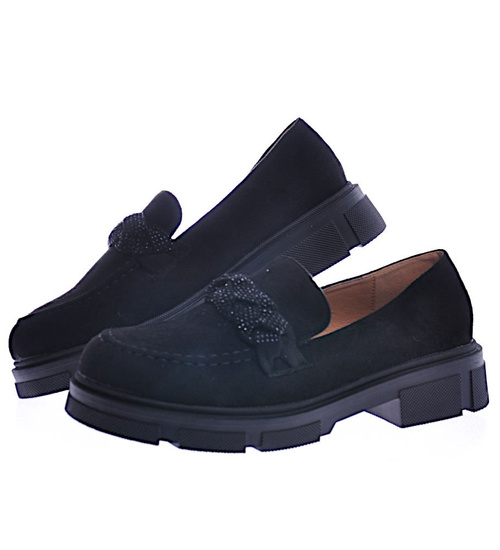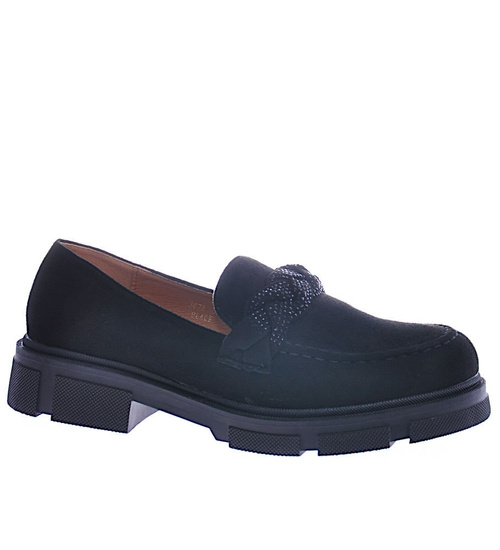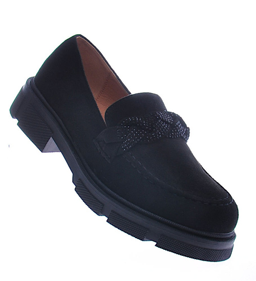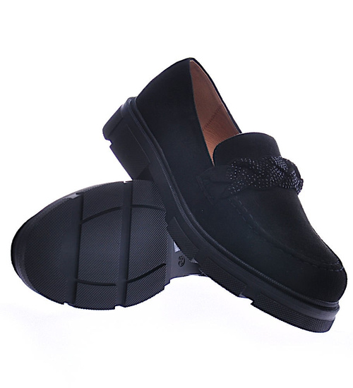 Czarne półbuty mokasyny na platformie /C6-3 12707 T798/