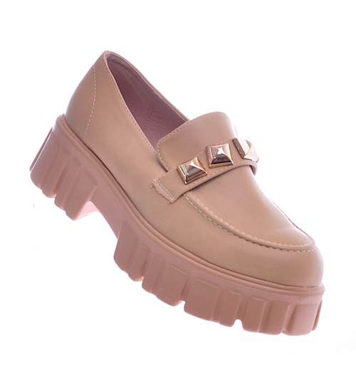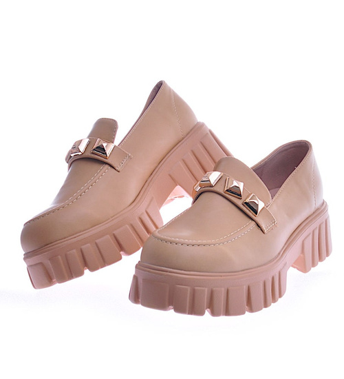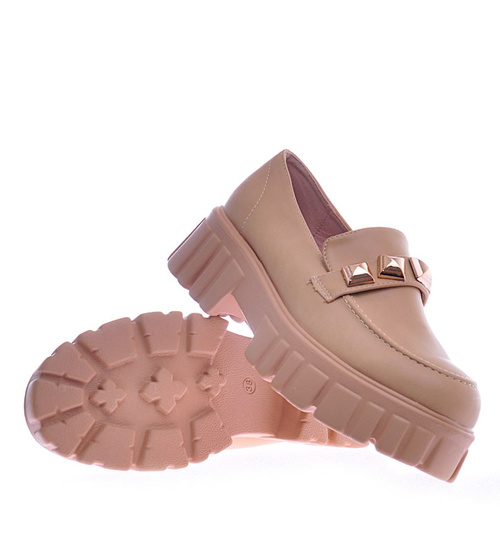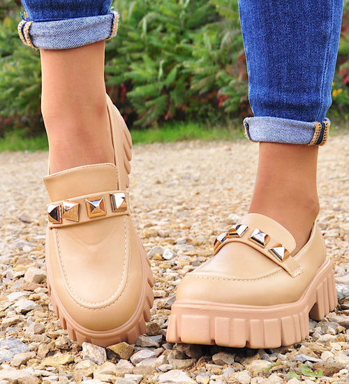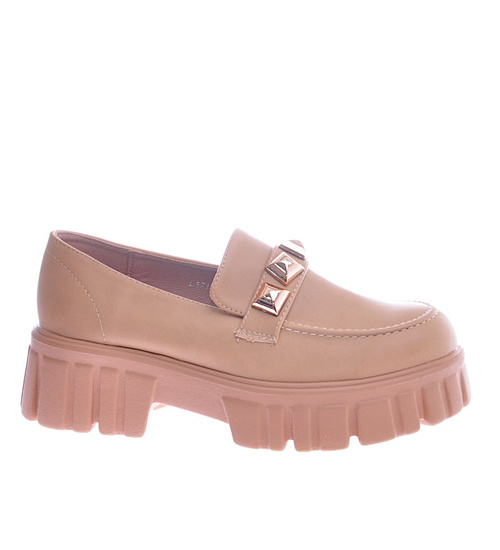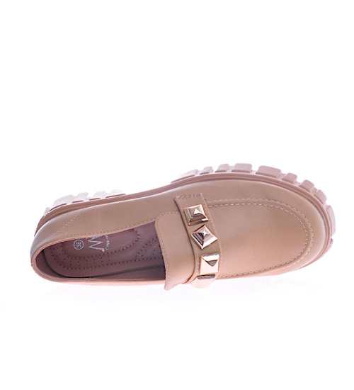 Camelowe półbuty mokasyny na platformie /D7-2 12745 T495/