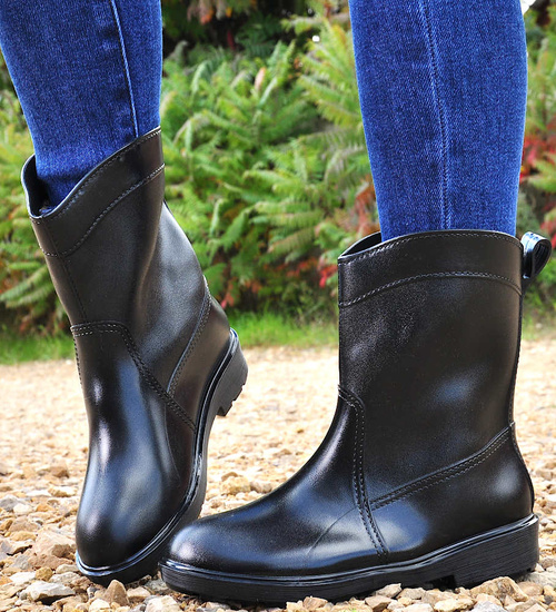 - Praktyczne i wygodne damskie kalosze z umiarkowanie wysoką cholewką.