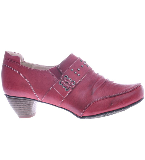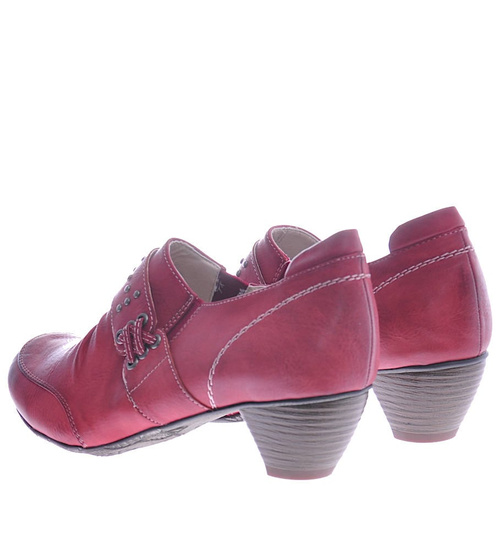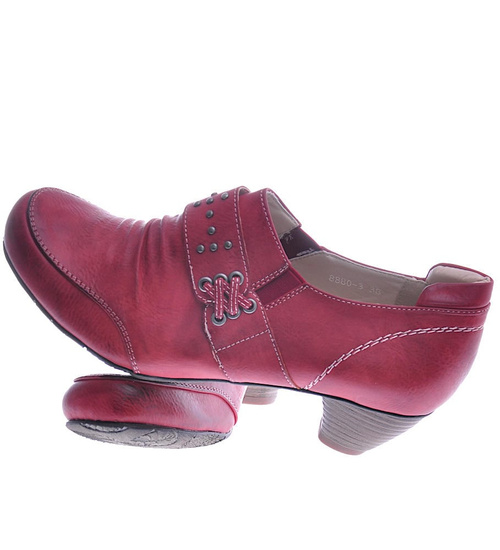 Bordowe półbuty damskie na niskim obcasie /E10-2 12751 T197/