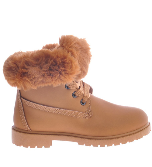 Kamelowe dziewczęce trapery z futerkiem /D6-2 12736 T492/