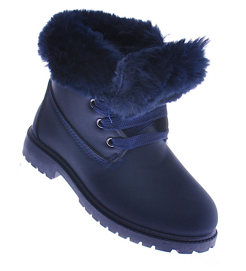 Granatowe dziewczęce trapery z futerkiem /E8-2 12737 T492/