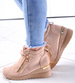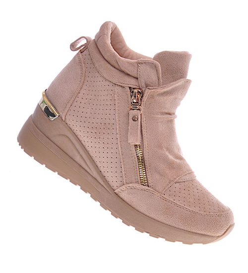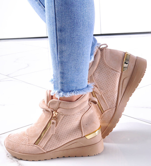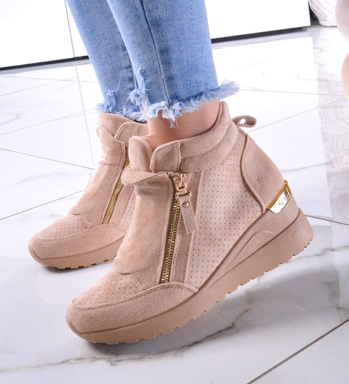 Beżowe sneakersy damskie na koturnie /E3-3 12827 T890/