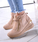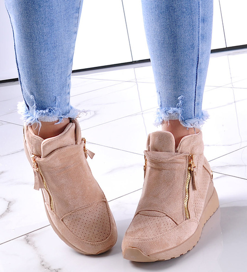 • Beżowe sneakersy damskie wykonane z skóry ekologicznej zamszowej.