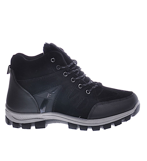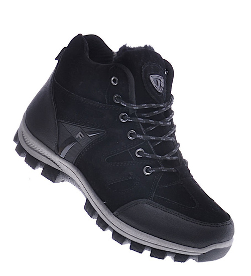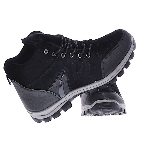 Sznurowane męskie buty trekkingowe Czarne /F7-3 12820 S593/