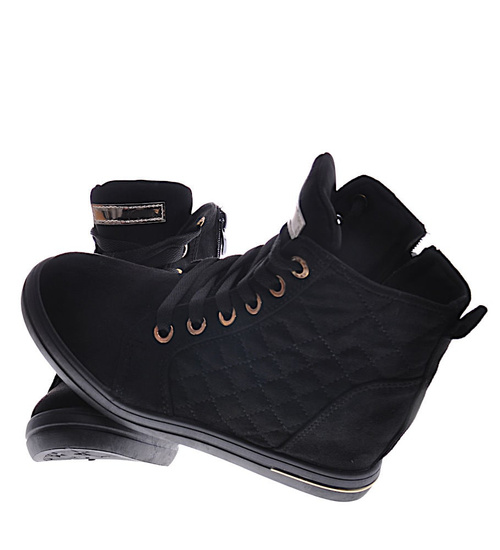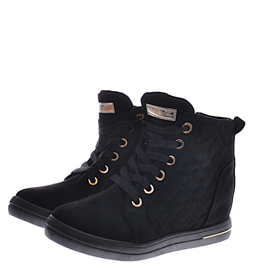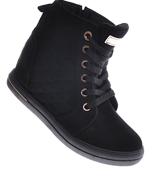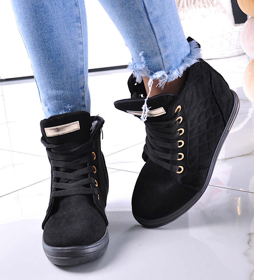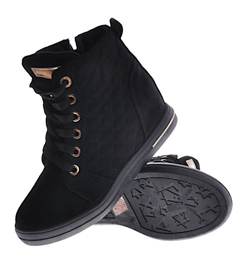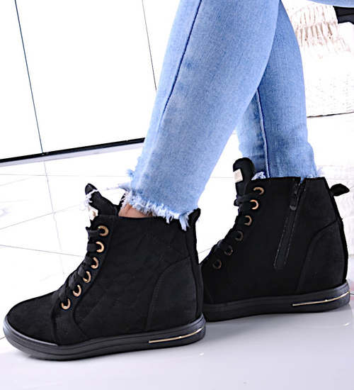 Czarne klasyczne sneakersy damskie na koturnie /D8-2 12856 T796/