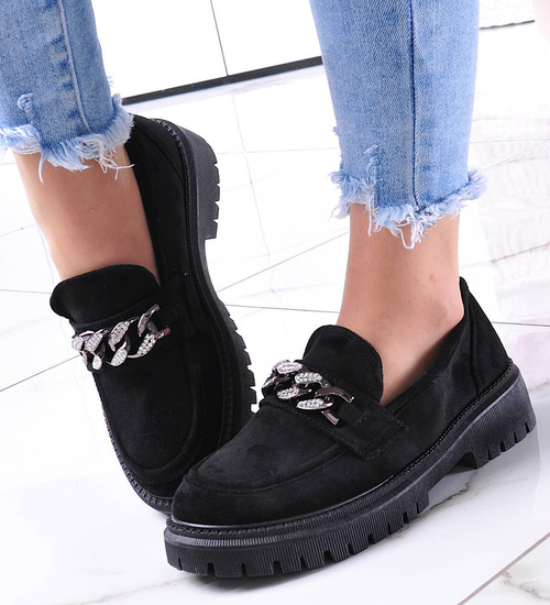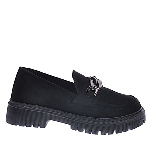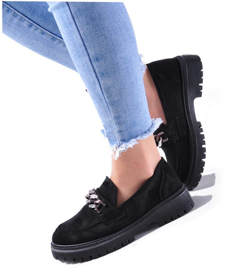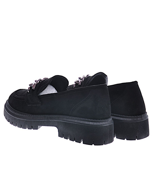 - Czarne mokasyny wykonane z skóry ekologicznej zamszowej.