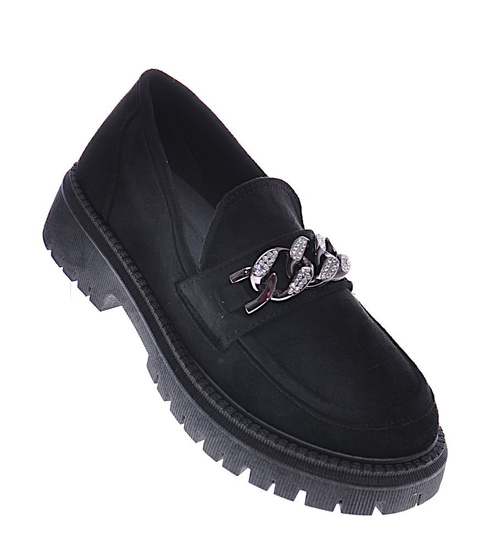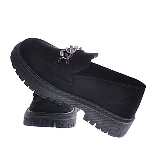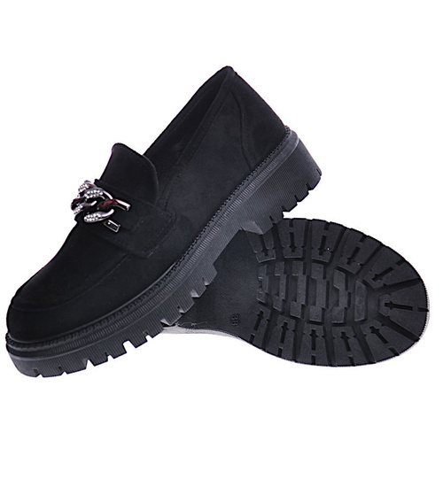Czarne półbuty mokasyny na platformie /B5-2 12705A T598/