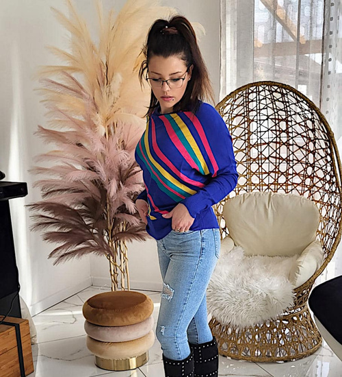 Granatowa koszulka bluzka damska z ozdobą /H2-K64 UB940 S0/