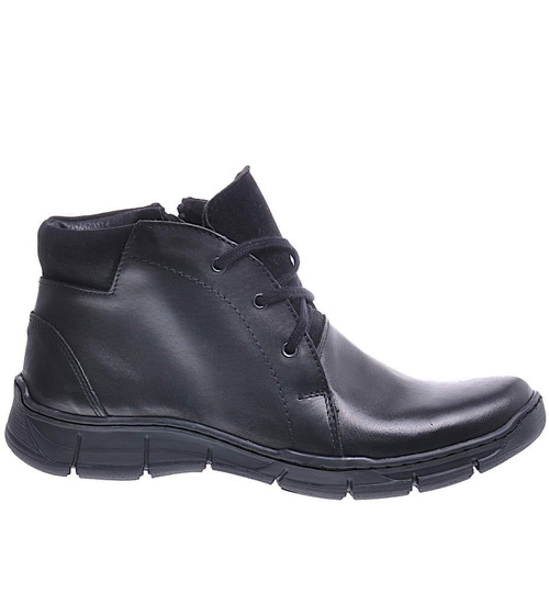 Skórzane buty męskie z ociepleniem Czarne /H8 12916 S154/