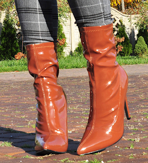 - Wsuwane damskie botki w modnym kolorze- propozycja do jesiennych zestawień.