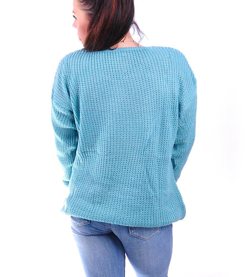 Turkusowy sweterek damski z wzorkiem /D8-1 UB295 U108/