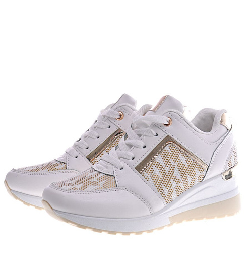Białe trampki sneakersy na niskim koturnie /C7-3 12942 T690/