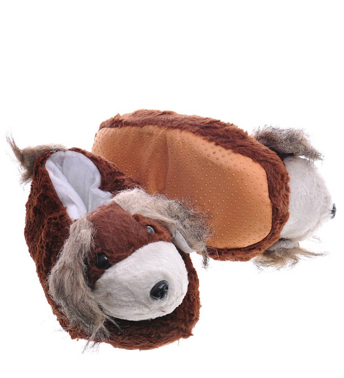- Przyjemne w dotyku, kolorowe, pluszowe kapcie pieski.