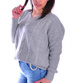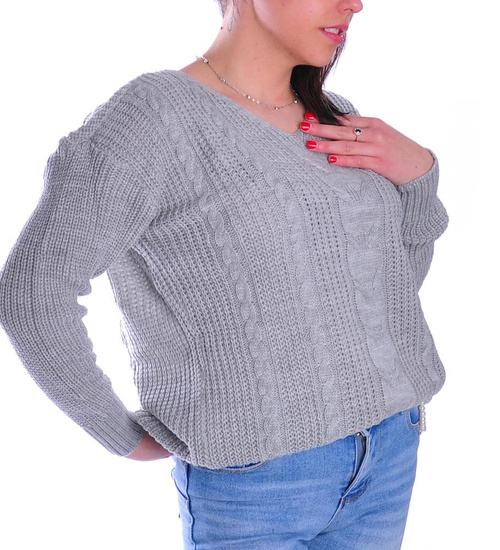 - Wygodny damski sweterek wykonany z rozciągliwego materiału w kolorze szarym- przyciągający uwagę model do codziennego noszenia.