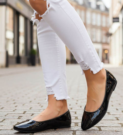 Czarne baletki damskie lakierowane /F8-2 13077 T196/